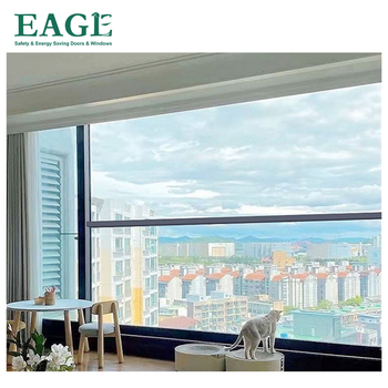 Remote Controlled Motorizado Vertical Deslizante Guilhotina Janela De Alumínio para Varanda De Vidro